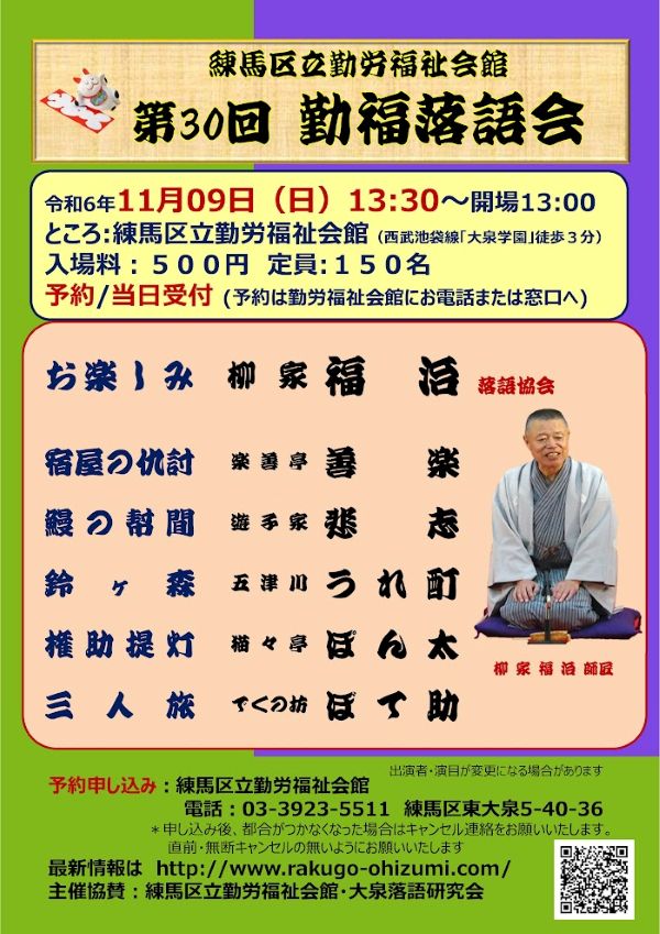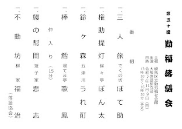 第30回 勤福落語会(主催:練馬区立勤労福祉会館)