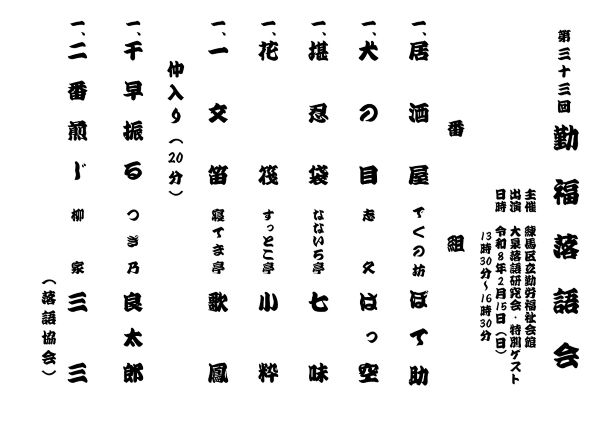 第33回 勤福落語会(主催:練馬区立勤労福祉会館)