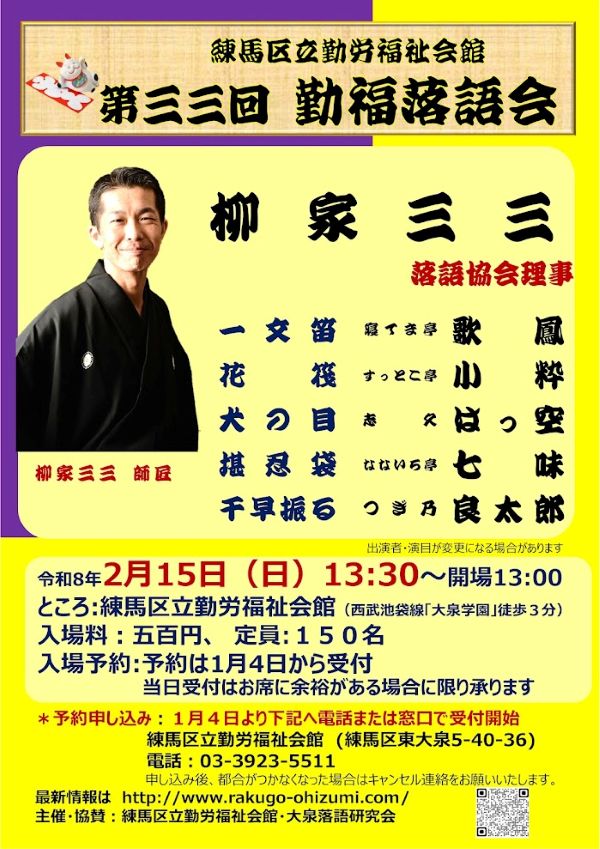 | 「大泉図書館〜特撰落語会〜」にて口演致しました | (2025.11.16) |