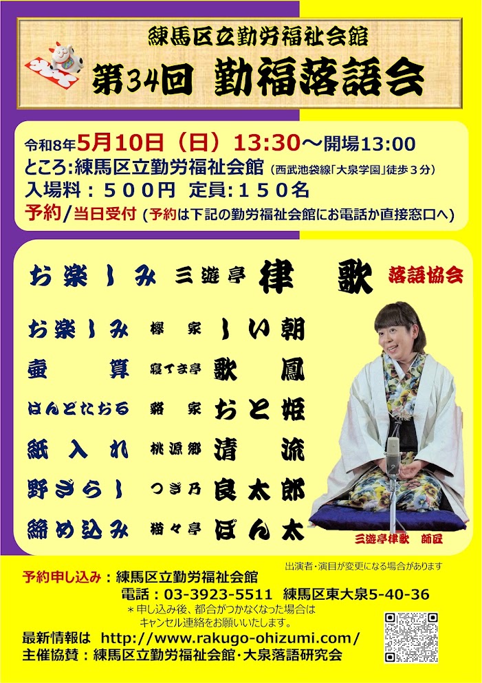 第34回 勤福落語会(主催:練馬区立勤労福祉会館)