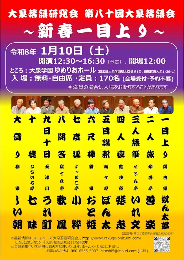 | 「大泉図書館〜特撰落語会〜」にて口演致しました | (2025.11.16) |